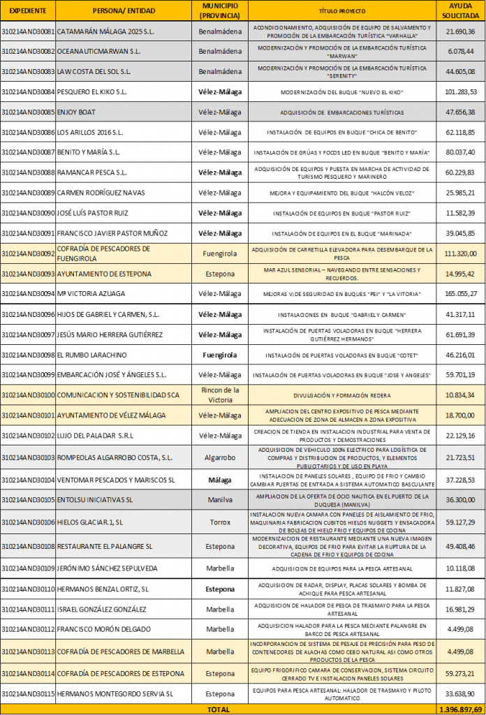 Estas ayudas están dirigidas a proyectos en la costa de Málaga relacionados con: