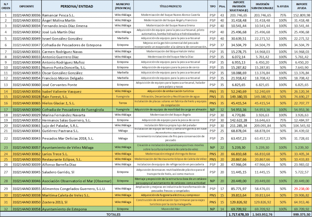 El 30 de octubre se ha publicado la PROPUESTA DEFINITIVA DE RESOLUCIÓN, detallándose en la siguinete tabla las PERSONAS O ENTIDADES BENEFICIARIAS DEFINITIVAS:
